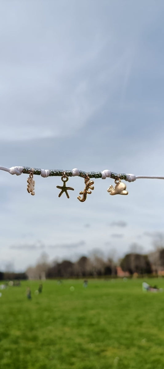 Bracciale cordino colorato con granelli e 4 ciondoli
