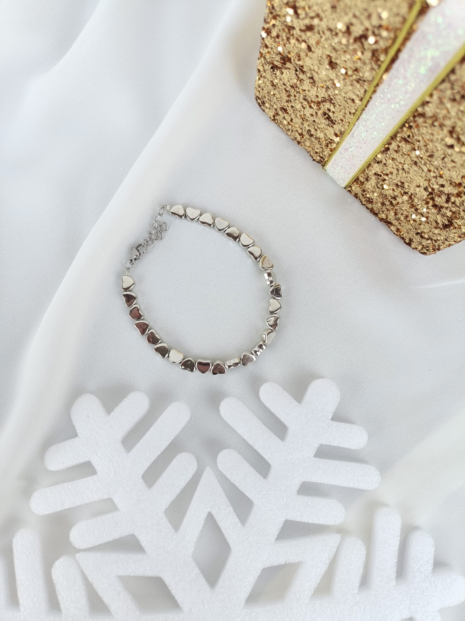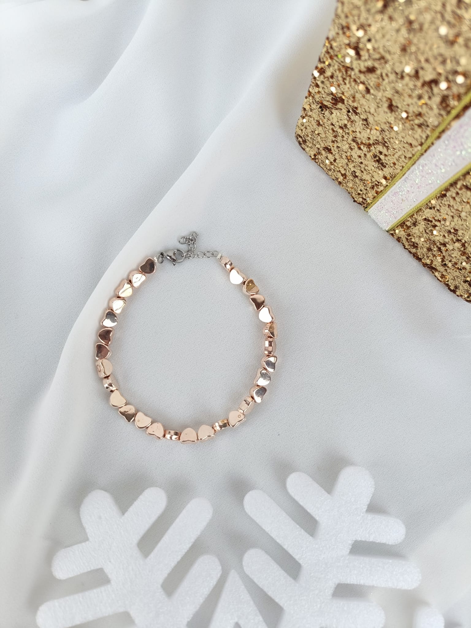 Bracciale cuori ematite argento e oro rosa