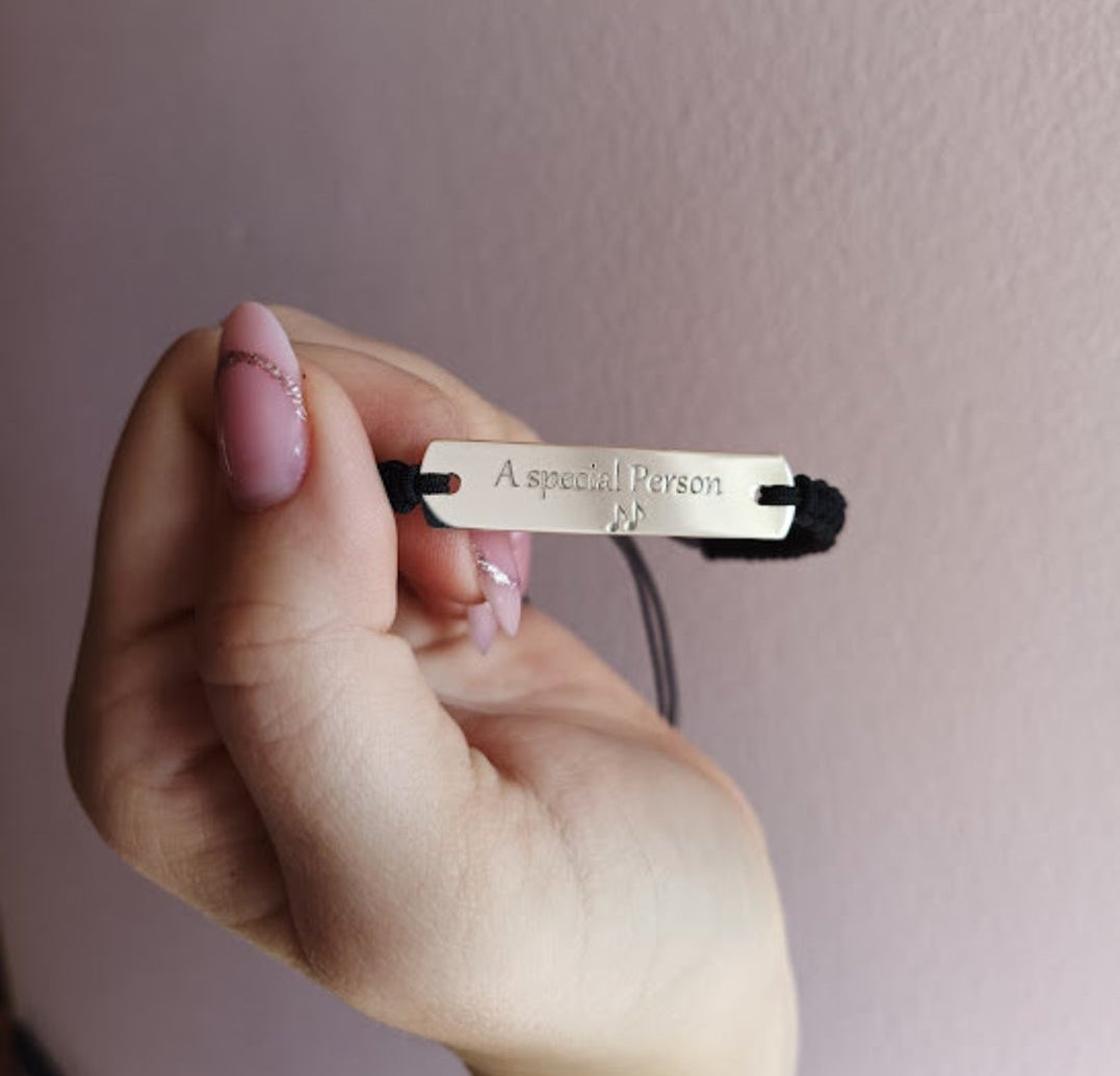 Bracciale targhetta in Argento 925 e cordino colorato a scelta tra nero e blu.