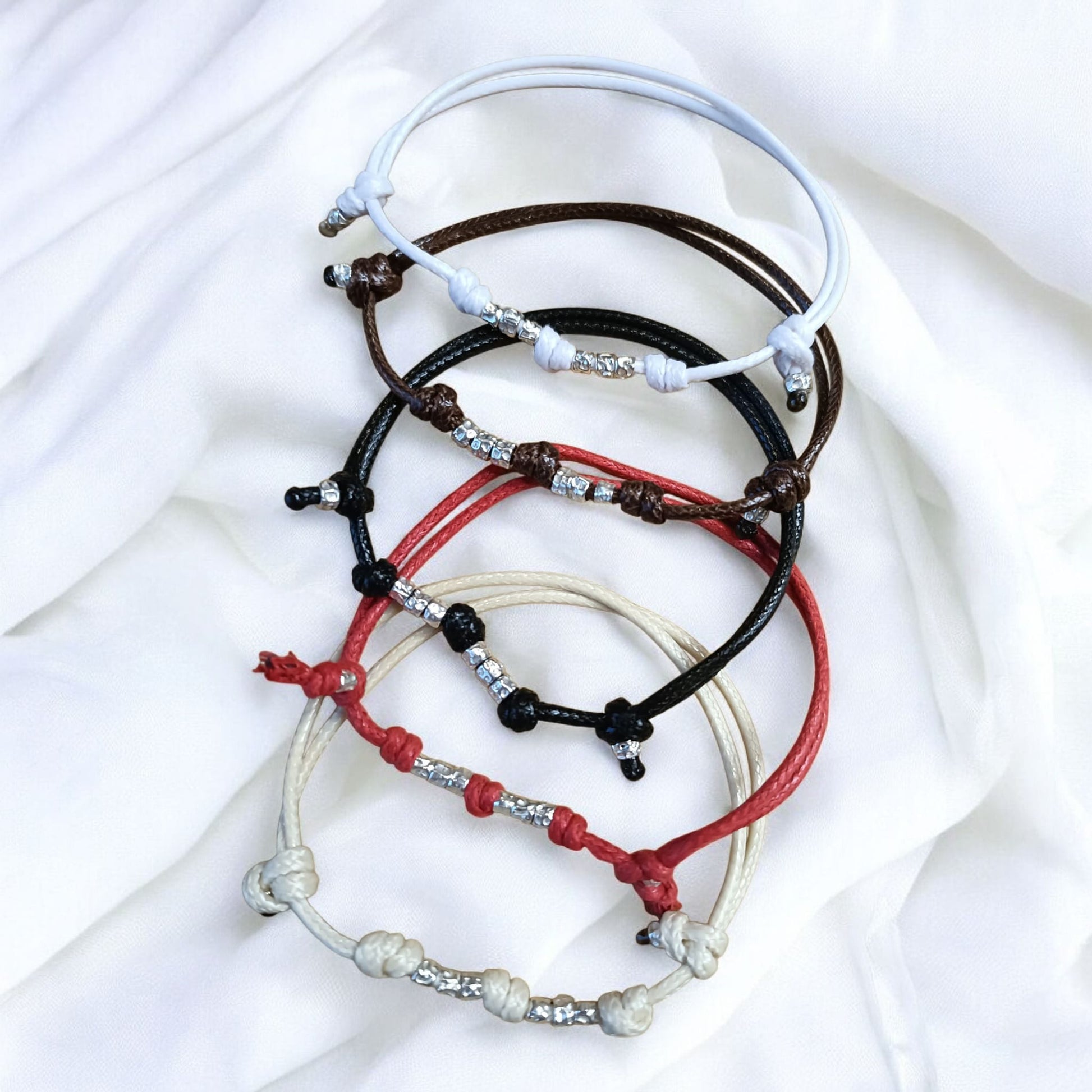 Bracciali bambini cordino colorato con granelli martellati. Senza ciondoli.